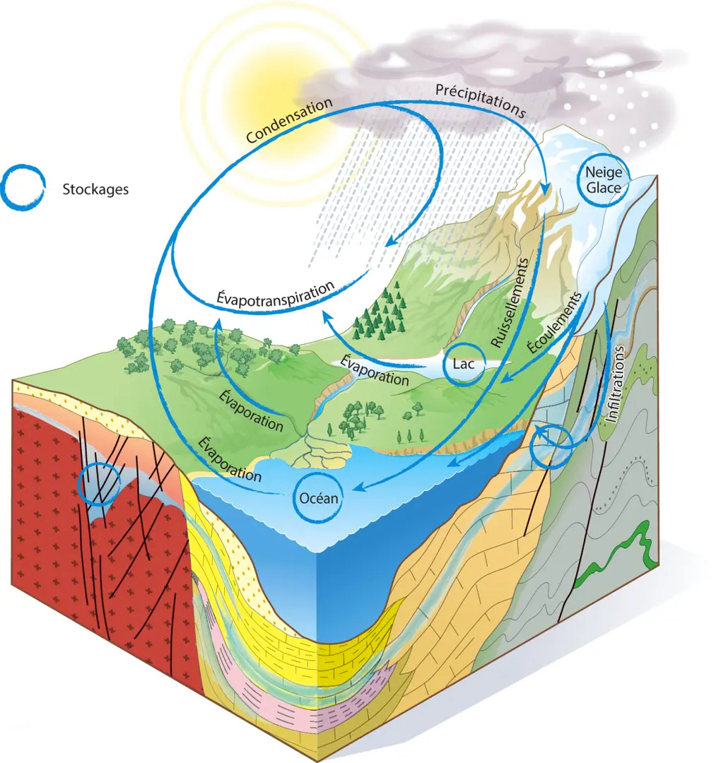 Le cycle de l'eau et la recharge des nappes